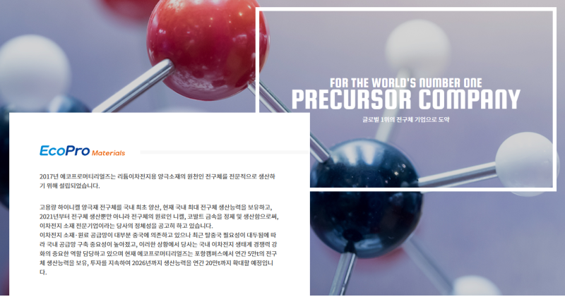 주요 사업: 2차전지 양극재 전구체 제조 및 판매
