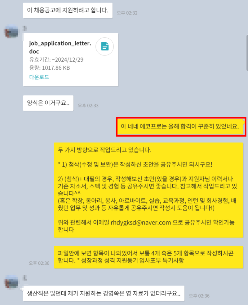 촉박한 기간이었는데  이렇게 고퀄로 첨삭해다니  .감동에 또 감동입니다…직무에 대한 이해도 엄청나시고  제가 여러모로 너무 걱정도 많고 부담스러운 상황이었는데 전문가님 덕분에 정말 많은 도움 받을 수 있어서 정말 좋았습니다!