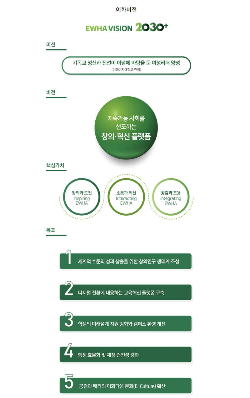 • 비전: 세계 최고 수준의 여성 고등 교육기관