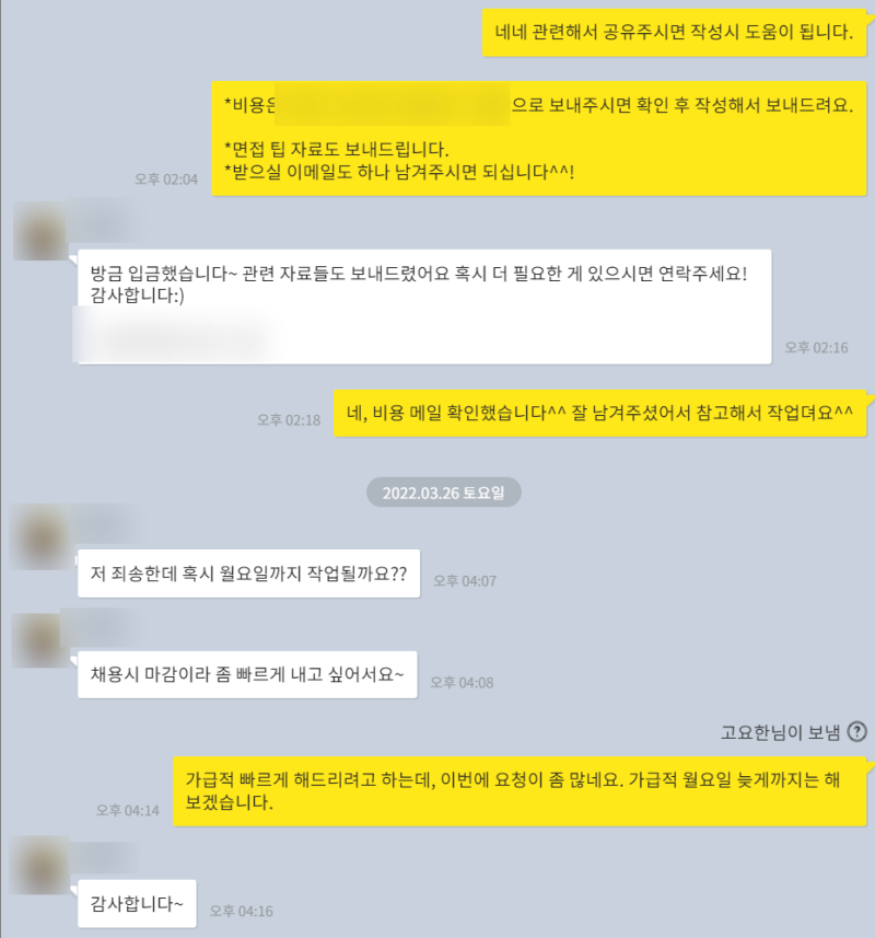 다소 급하게 요청드리고  요청사항도 많았는데 친절하게 잘 작업해주셨습니다! 내용을 잘 구체화해 주셔서 작성에 도움이 된 것 같습니다. 감사드려요!