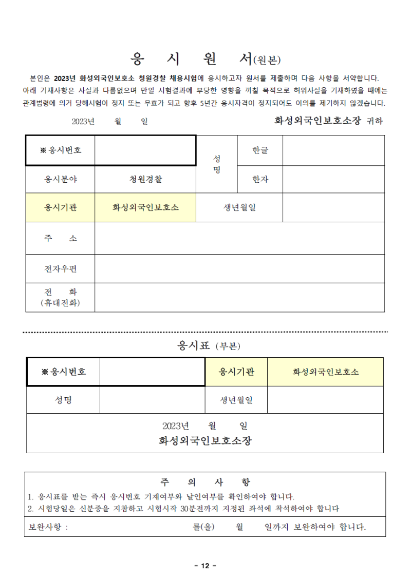 코멘트: 청원경찰 직무와 관련된 경험을 최대한 어필해야 합니다. (예: 경비, 안전 관련 교육 이수 경험 등)