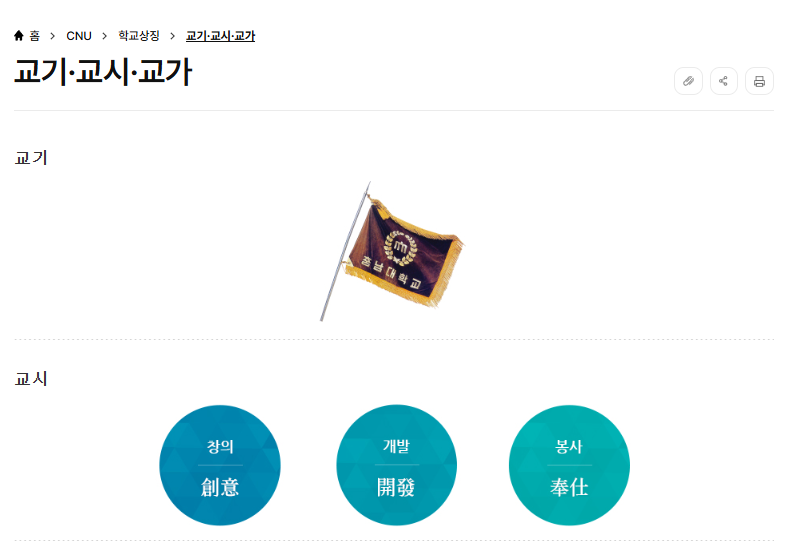 핵심 가치: 창의, 봉사, 실천