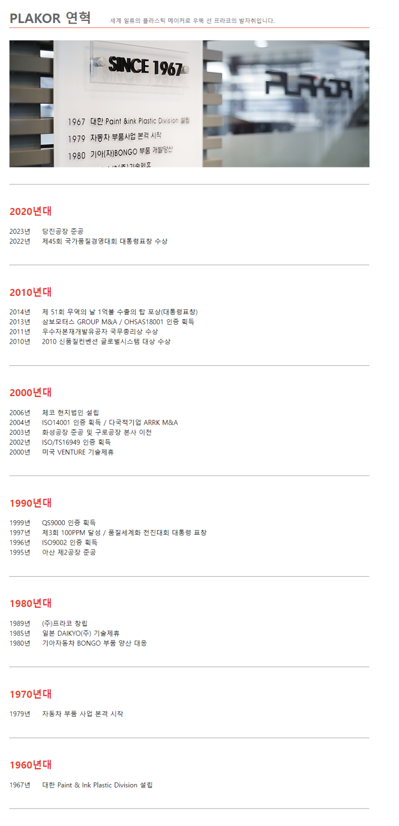 사업 분야: 자동차용 플라스틱 연료탱크, 자동차용 플라스틱 부품, 친환경 자동차 부품