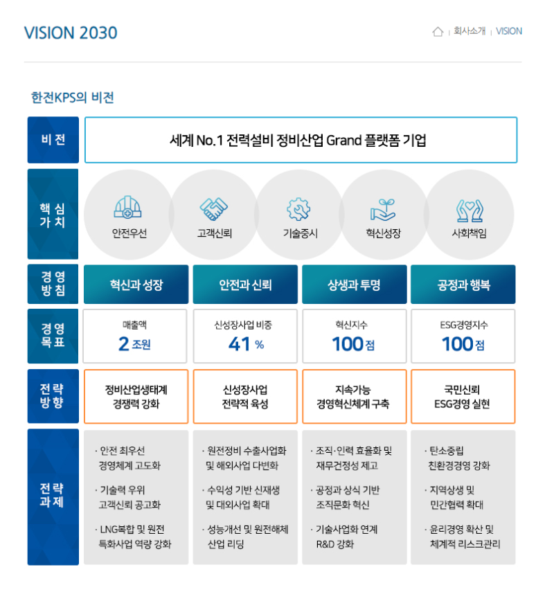 📚 한전KPS 분석자료 (핵심가치, 비전, 인재상, 각종 사업 등)