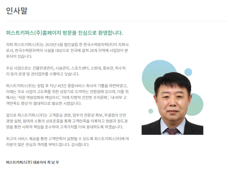 - 인재상: 퍼스트키퍼스의 인재상 도전, 혁신, 협력 등
