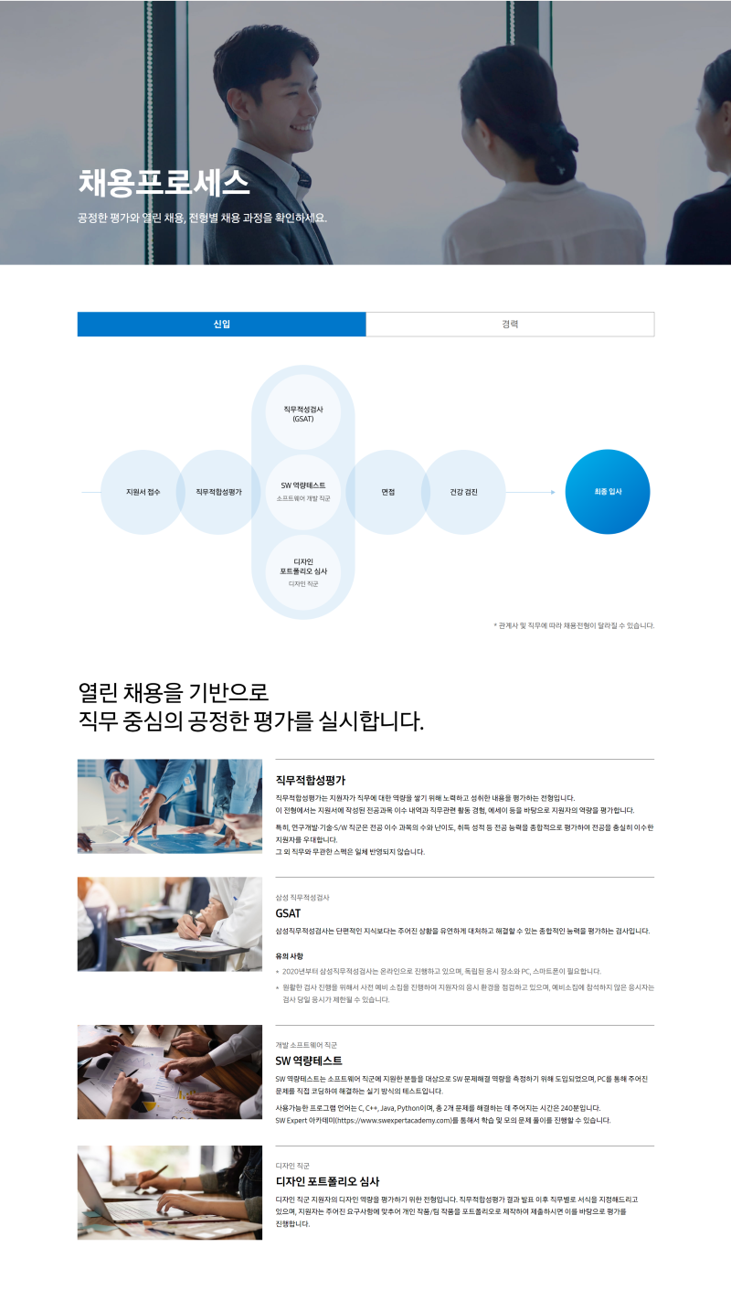 • 인재상: 몰입과 도전으로 혁신을 선도하는 인재, 고객과 세상을 이롭게 하는 창의적인 인재