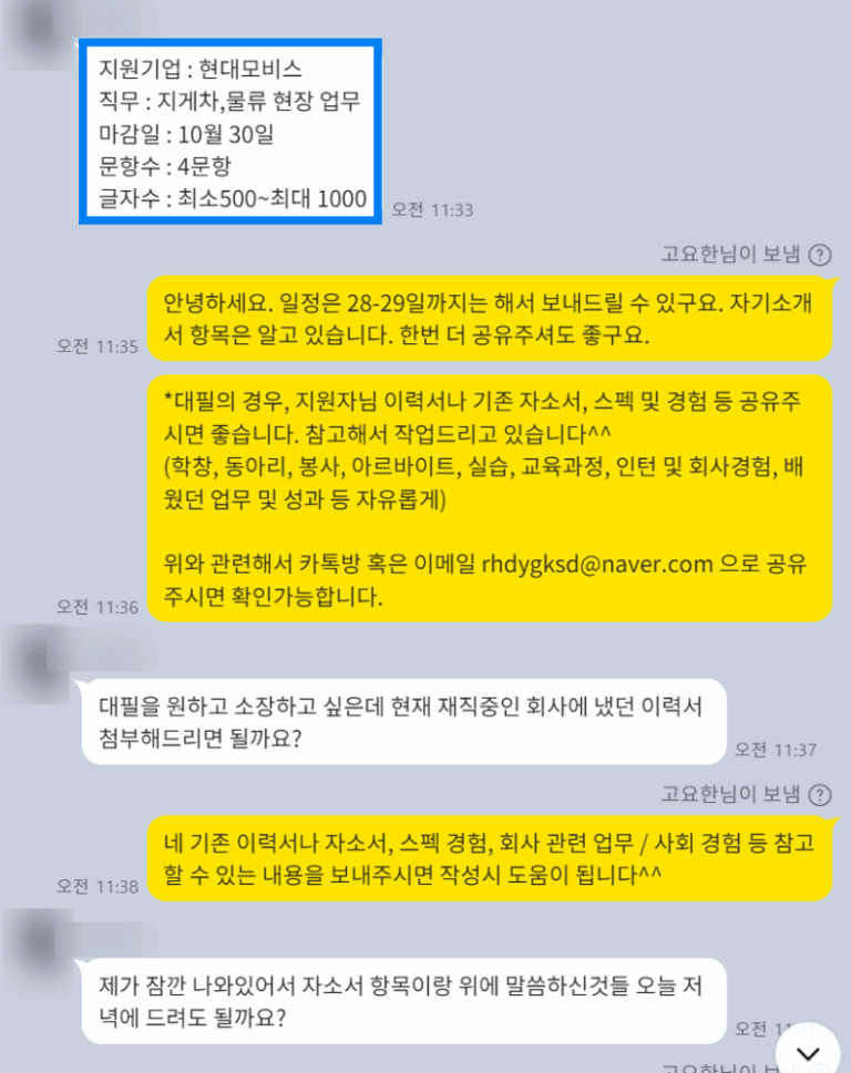 대기업 생산직 자기소개서, 첨삭 대행으로 서류 합류! 합격 후기 공개